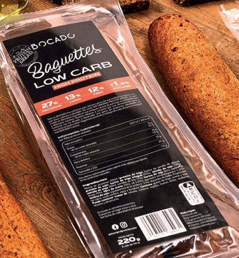 BAGUETTE PROTEICA , Envase con 2 unidades de BAGUETTE rica en proteinas y con un indice glucémico muy bajo.
