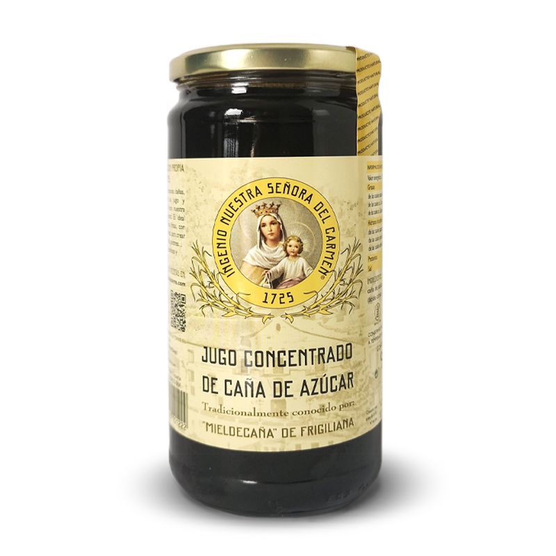 Mel de Nuestra Señora del Carmen. Concentrat del suc de la canya de sucre, ideal per esmorzars, berenars i tot tipus de menjars. Pot de 920 grs. Caixes de 9 unitats. Es venen per caixes.